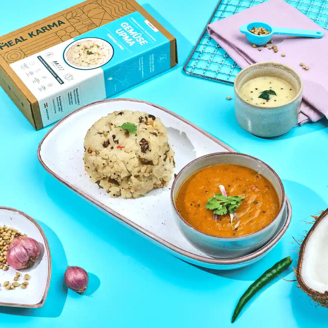 A wholesome South Indian dish crafted from semolina, loaded with colourful vegetables and seasoned to perfection. Upma, a popular breakfast dish across South India, brings together the goodness of vegetables and the lightness of semolina, delivering a healthy, quick, and fulfilling meal.