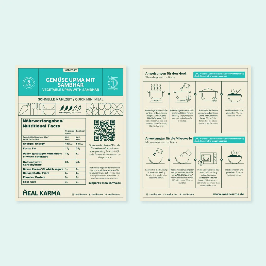 Suji (Semolina), Edible oil(Rice Bran), Sugar, Dehydrated Carrot, Bengal Gram, Urad Gram ,Dehydrated Beans, Green chillies, Mustard Seeds, Curry Leaves, Lemon juice and Iodised Salt.